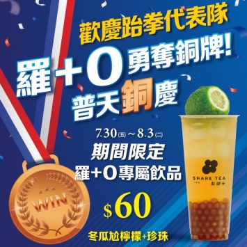 7/30-8/3 期間限定全國所有門市推出”嘉翎+0專屬飲品:冬瓜尬檸檬+珍珠”每杯60元。