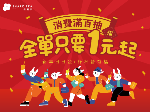 STYLETC-手搖飲「全單1元」!新春抽獎活動,4樣折扣讓你爽喝飲料! Sharetea歇腳亭全台門市自1/13至1/31推出1元復始迎新春大抽獎!只要來店單筆消費滿100元,就可現場抽獎,有機會抽到「全單1元」,還有其他眾多獎項,中獎率百分百,要讓各位新年日日發,杯杯皆有福,大家一起喝起來吧! Read More