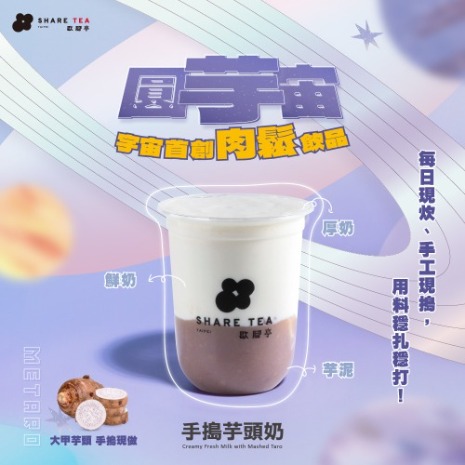 芋新歡:濃純厚奶、黃金翠玉、大甲芋頭泥、手工奶酪