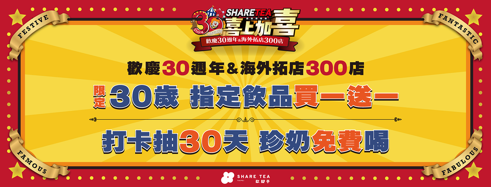 Sharetea歇腳亭滿30歲啦!!! 同時海外拓店也達到300間店!!!!