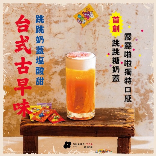 首創跳跳糖奶蓋搭配基底塩酸甜飲品,建議10分鐘內飲用上層奶蓋,才能完整享受跳跳糖帶來的獨特口感哦!