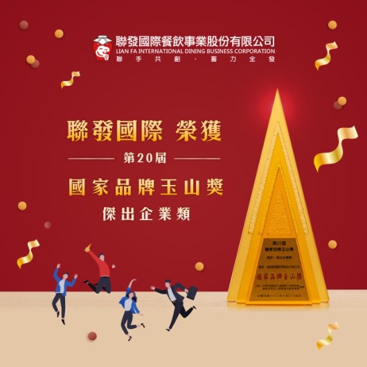 狂賀! 聯發國際餐飲 榮獲 第20屆 國家品牌玉山獎 「傑出企業類」大獎 感謝國家品牌玉山獎 對聯發國際的肯定 我們備感光榮 也希望將此榮耀時刻 與每一位支持我們的朋友分享 未來我們還會繼續努力! 期許成為台灣品牌的驕傲 FACEBOOK Instagram