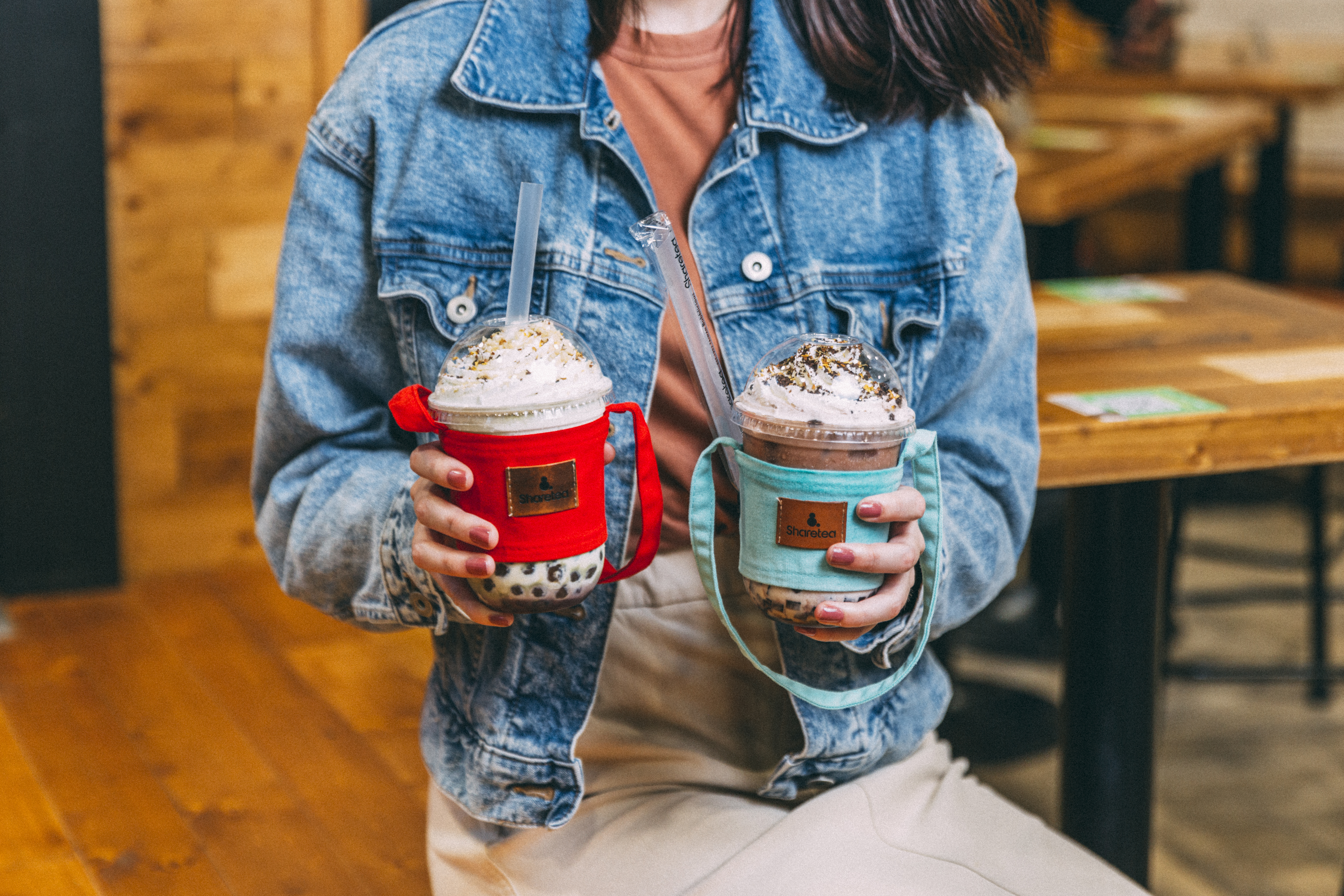 Sharetea的環保提帶,皮質logo加上精緻的車工,並有可放吸管的空間,用它裝著手搖飲料拎在手上,超文青。現在只要消費滿百元,就有機會免費獲得。